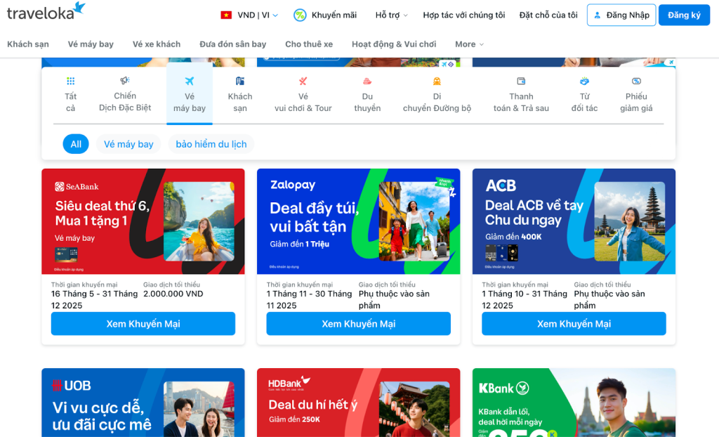 Ngoài giảm trực tiếp trên giá vé, Traveloka còn có chương trình hoàn tiền, tích điểm hoặc quà tặng khi thanh toán qua ứng dụng. Việc kết hợp nhiều chương trình khuyến mãi cùng lúc sẽ giúp bạn tiết kiệm đáng kể chi phí tổng thể. Đừng quên chia nhỏ nhóm du lịch để đặt vé riêng lẻ. Đôi khi số lượng ghế khuyến mãi có hạn, việc tách vé giúp tăng cơ hội tìm được mức giá thấp hơn cho từng hành khách.